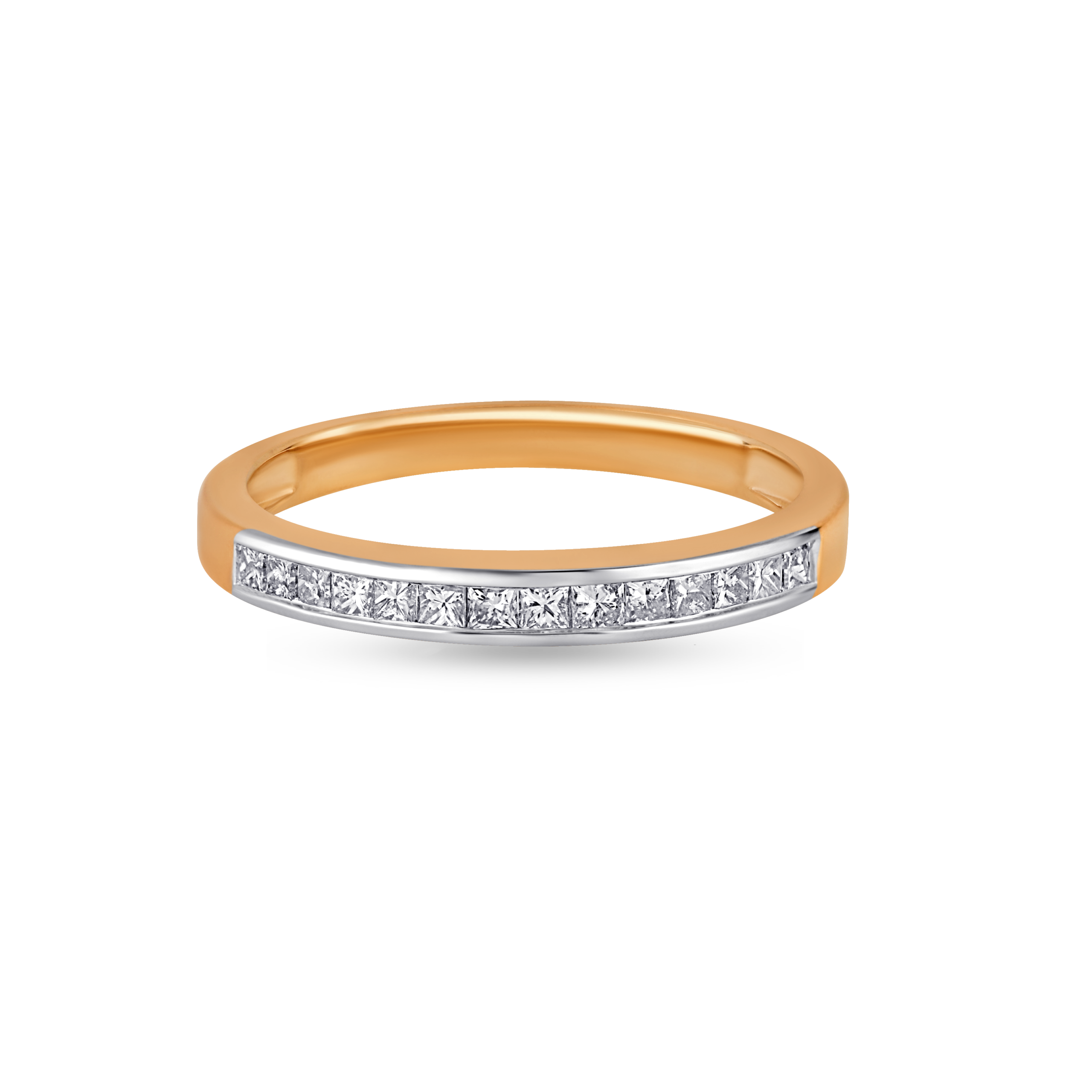 Crafted in 14K gold, this elegant band features a seamless row of princess-cut diamonds set in a sleek channel setting. Designed for everyday sophistication, the clean linear form highlights the brilliance of each diamond while maintaining a minimal and modern aesthetic. A timeless piece that blends subtle luxury with refined craftsmanship.
