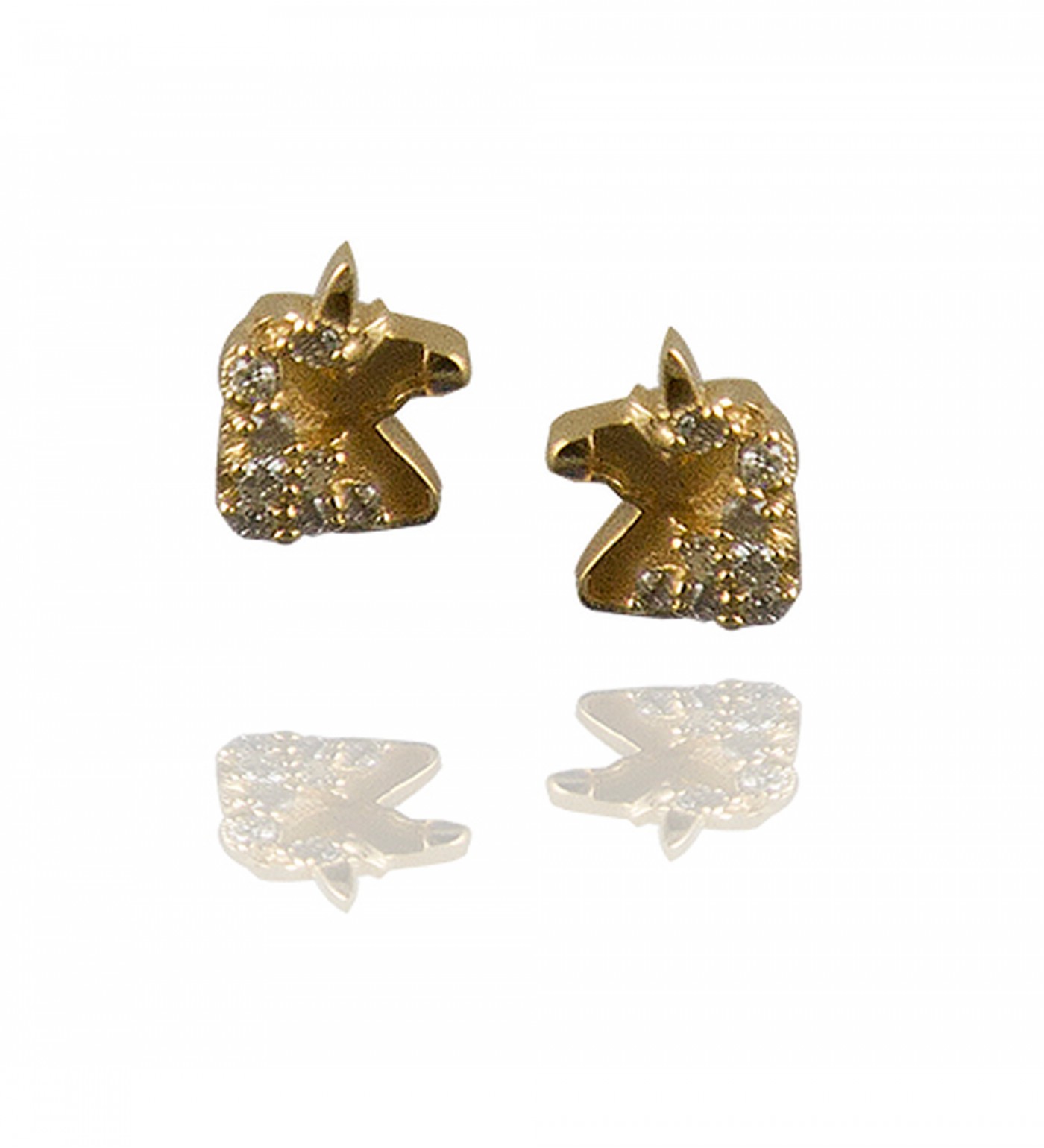 14k Yellow Gold, Round Brilliant Cut Diamonds. Total 0.075 carats.