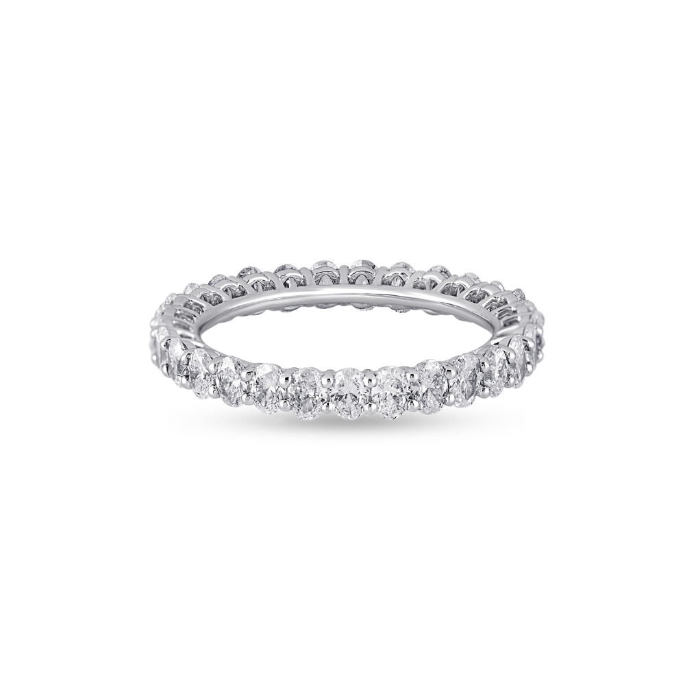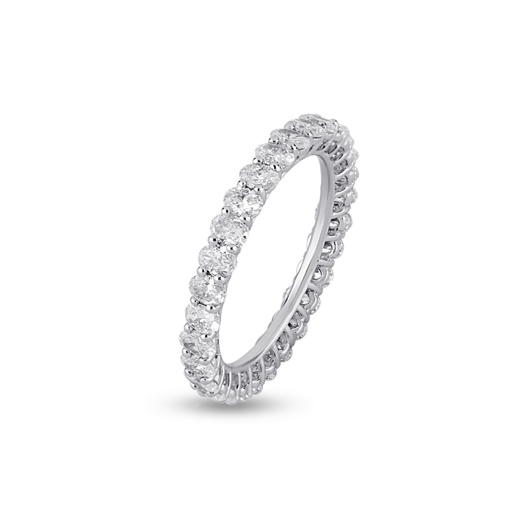 A refined expression of timeless elegance, this band is crafted in 14K white gold and set with a continuous row of pavé diamonds. The sleek, minimal silhouette enhances the brilliance of each stone, creating a delicate yet radiant piece designed for effortless everyday luxury or elegant stacking.